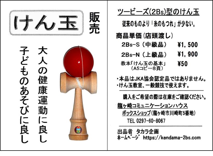 ![]() タカラ企画/茨城県取手市 ![]() メールアドレス 愛nfo@kendama-2bs度 (送信の際は「愛」の漢字を半角のiに 「度」 を.comに書き換えて下さい) |